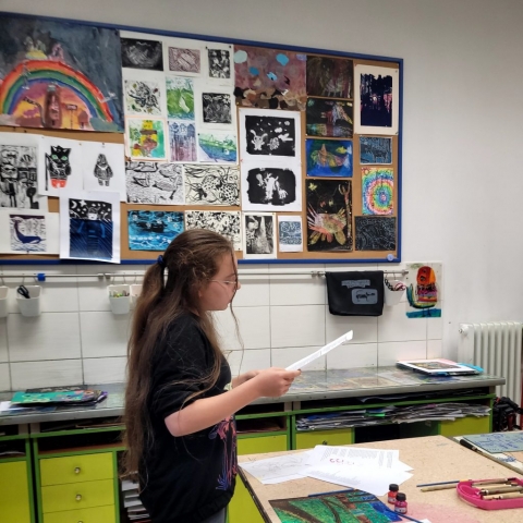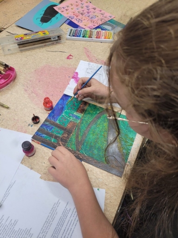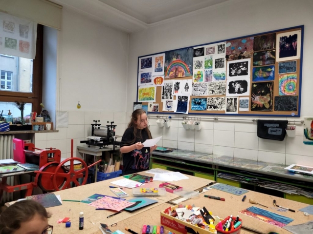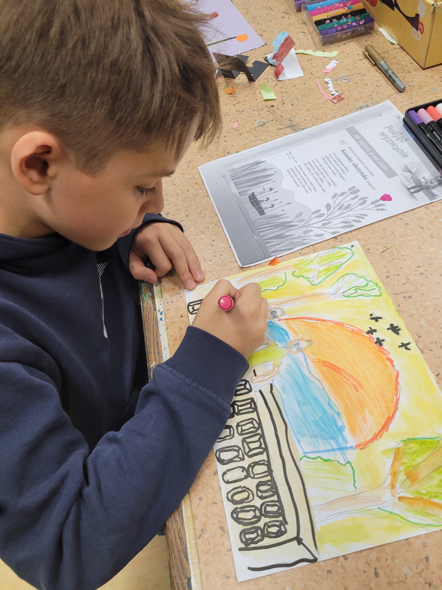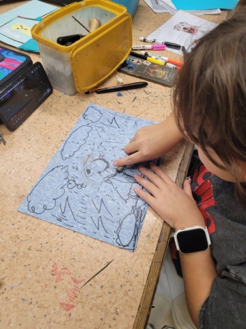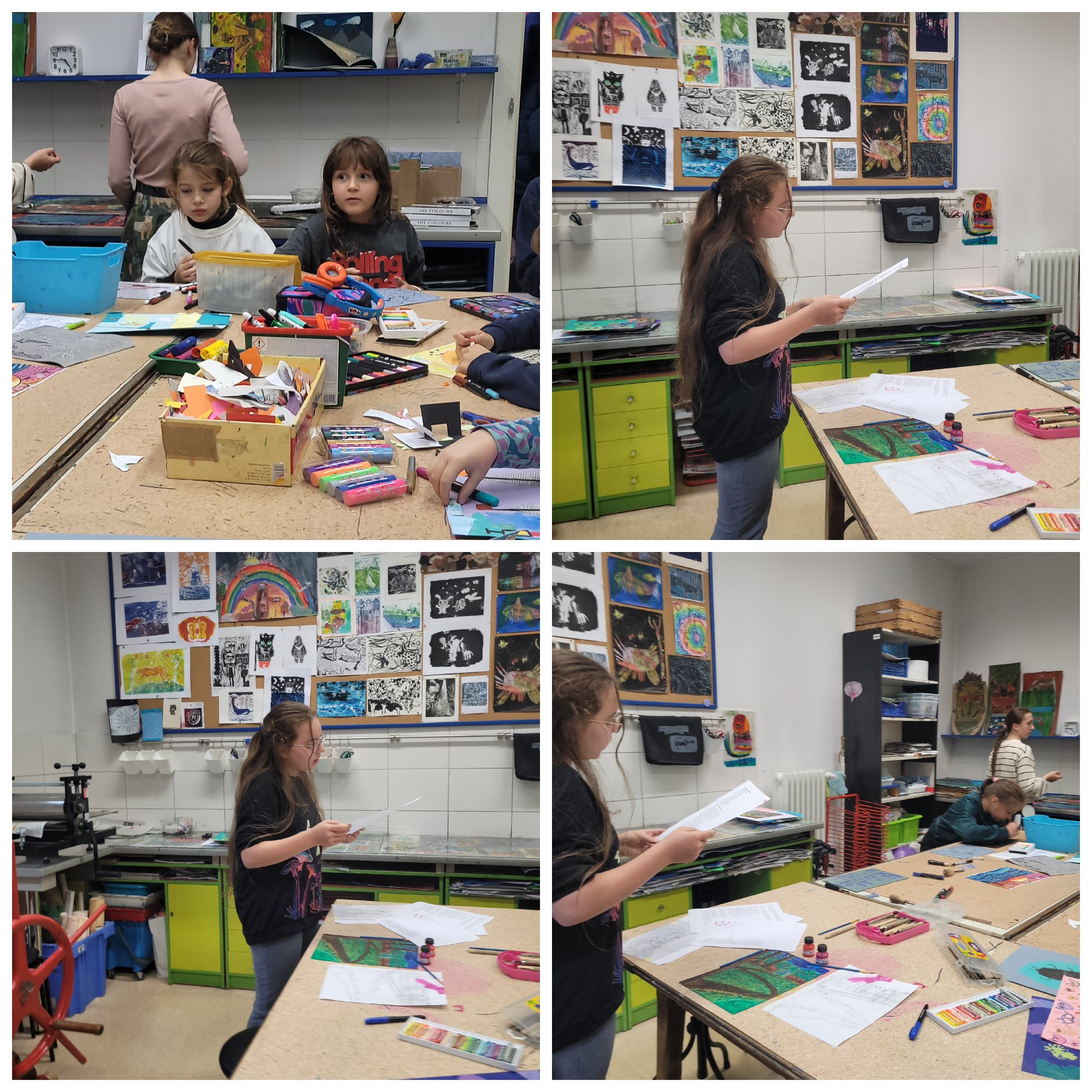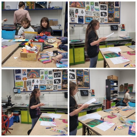 Zajęcia rozpoczęły się od wspólnego czytania i interpretacji poezji poety. Wśród wybranych tekstów znalazły się m.in. „Sen psa”, „Księżyc” oraz „Lunatyk”. Każdy z uczestników mógł wybrać wiersz, który najbardziej go poruszył, a następnie – inspirowany jego treścią i nastrojem – stworzyć własną ilustrację techniką piankorytu.