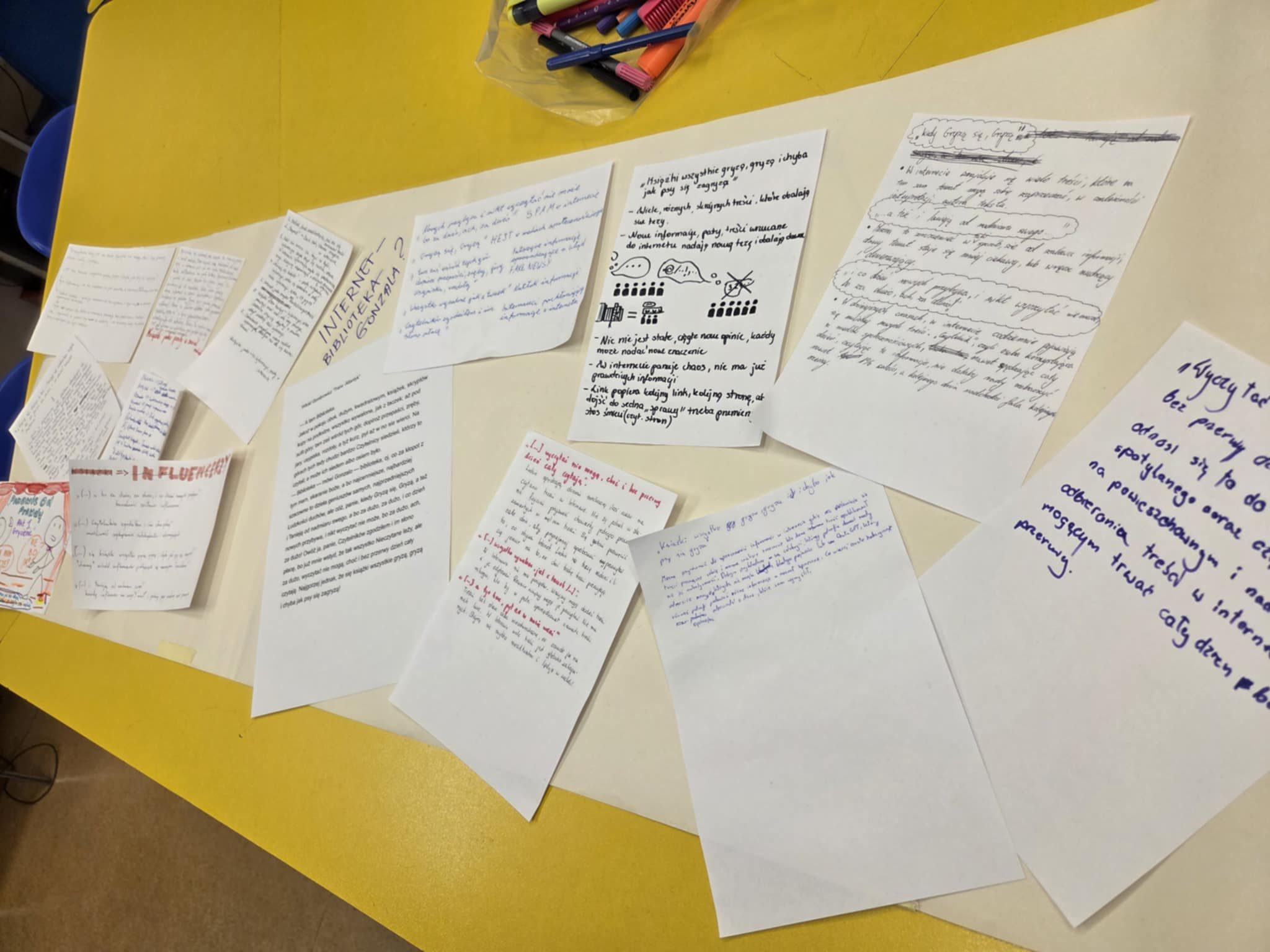 Uczestnicy i uczestniczki zajęć „Konteksty i spójność na maturze z j. polskiego” oraz „Teksty kultury na maturze z j. polskiego” przedstawiają swoje dowody na to, że Internet jest biblioteką Gonzala.